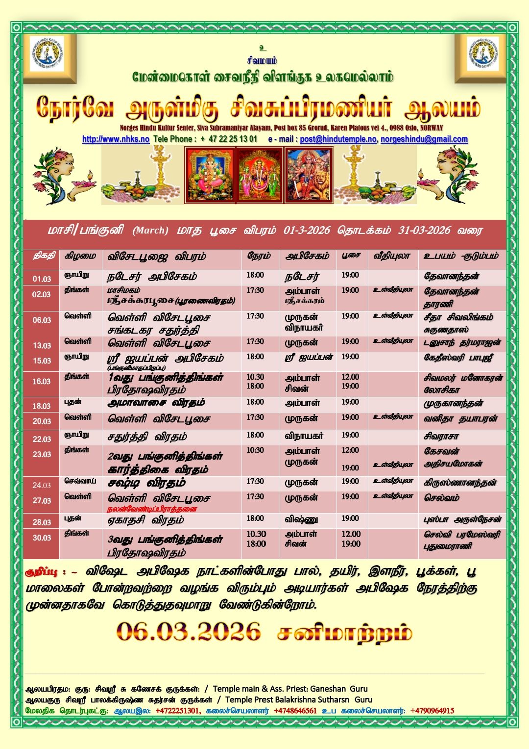 நோர்வே சிவசுப்பிரமணியர் ஆலயம் தங்களை நட்புடன் வரவேற்கிறது!