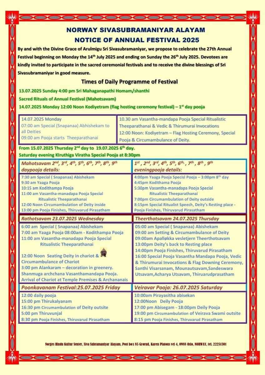 யாமிருக்க பயமேன்! Norges Hindu Kultur senter