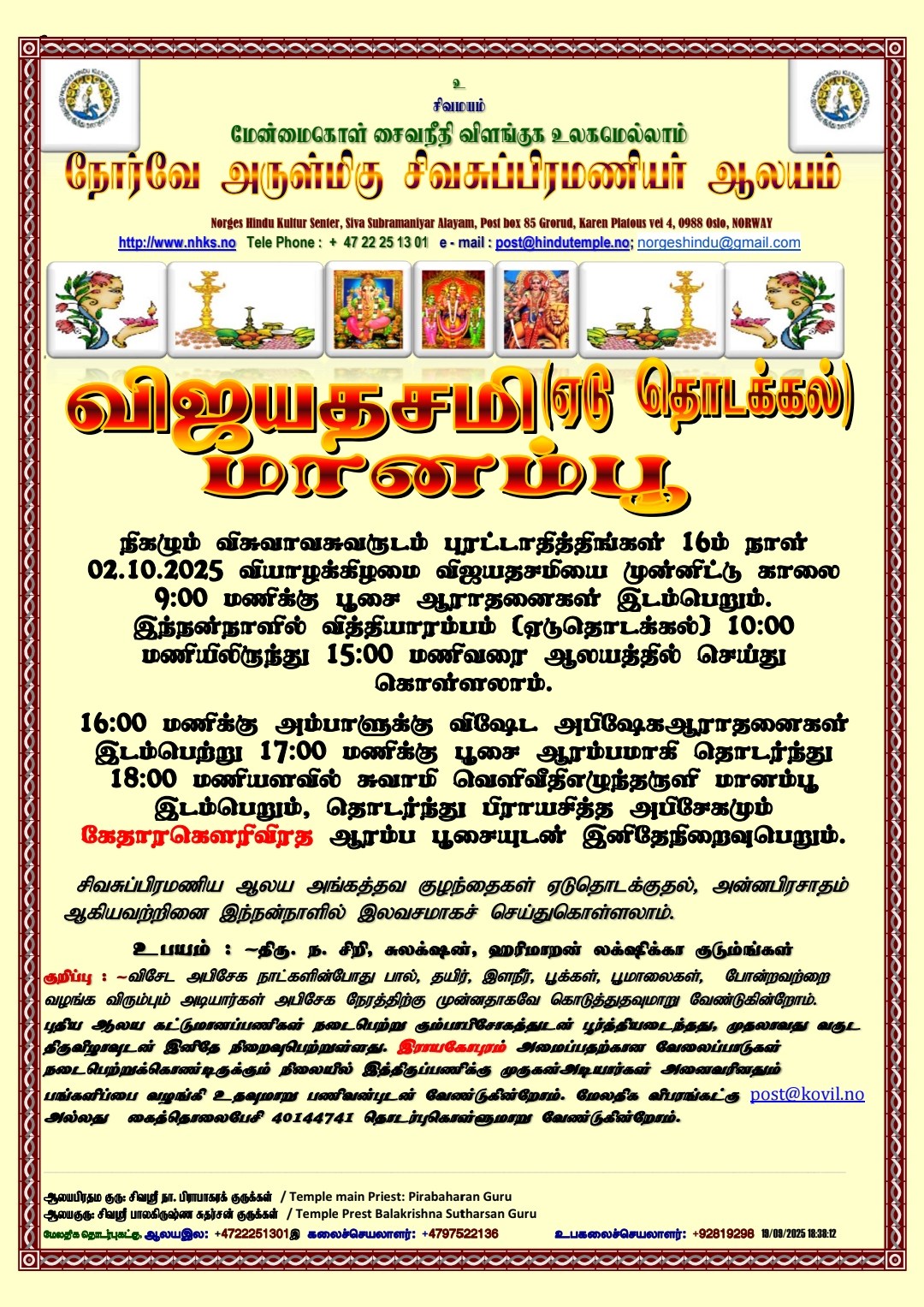 சிவசுப்ரமணியர்ஆலய இன்றைய முதலாவது நவராத்திரி விழாவில் இருந்து 22.09.2025